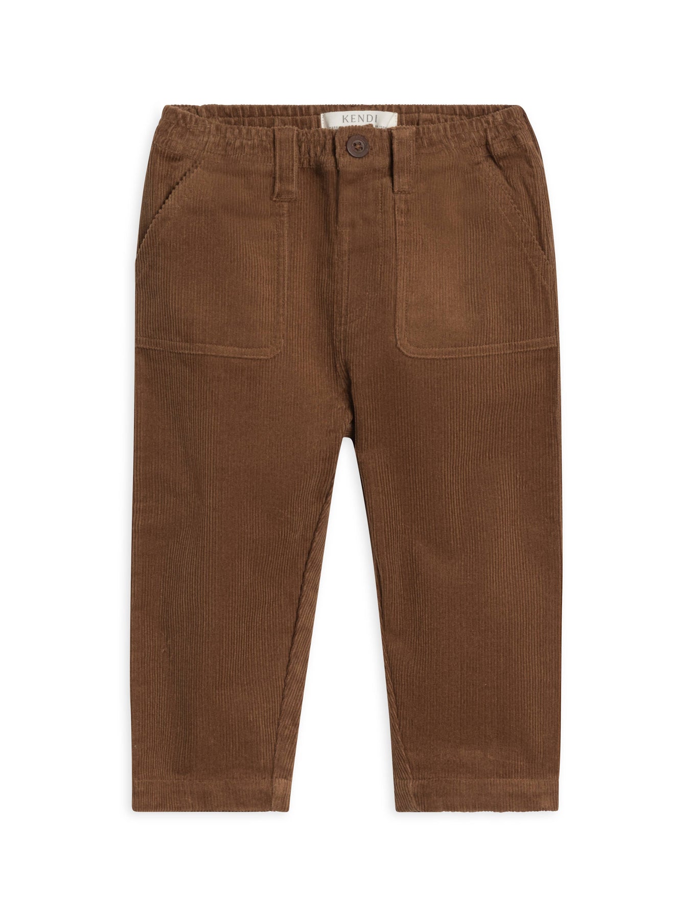 Prepare your little one for autumn and winter with the Kent Corduroy Pants! These versatile pants feature an elastic waistband with a button front for a secure and adjustable fit, along with a faux fly and belt loops for a classic look. Front and back patch pockets add practical storage while stitching details on the seams provide a polished finish. Made from soft corduroy, the Kent Pants offer both comfort and durability, making them perfect for crisp fall days and chilly winter outings. Ideal for autumn walks in the park, winter family gatherings, or holiday festivities, these pants ensure he stays cozy and stylish through every seasonal adventure.