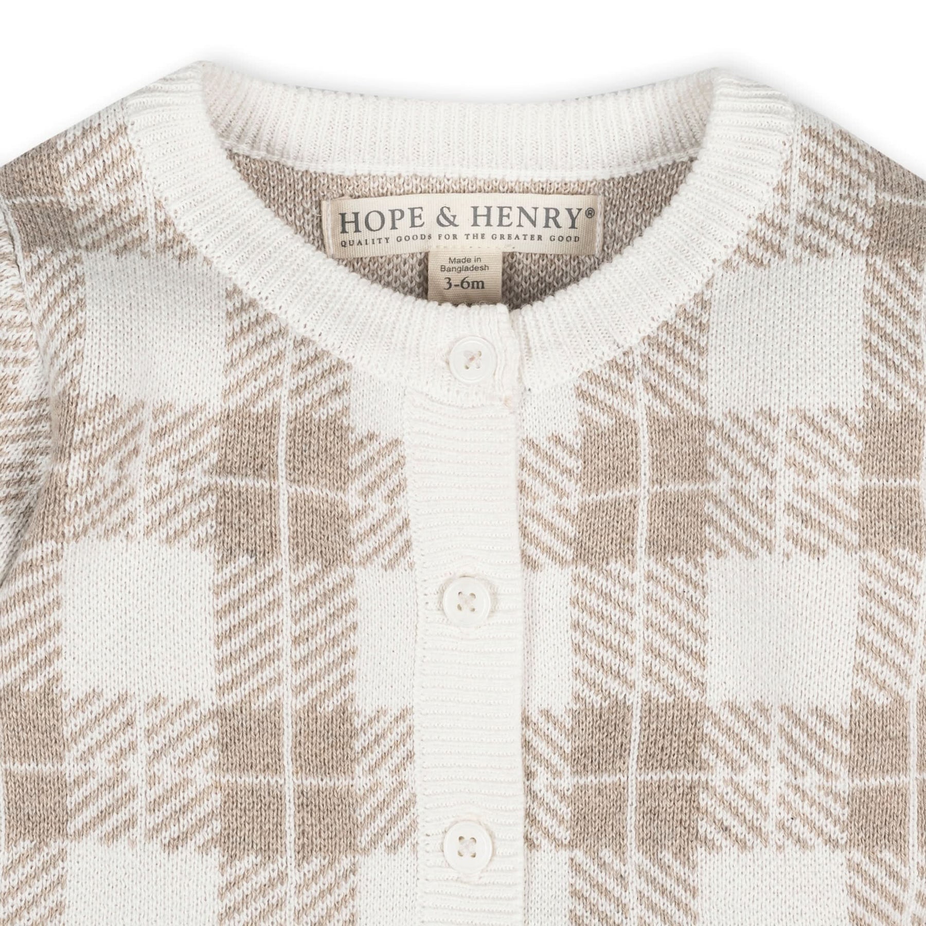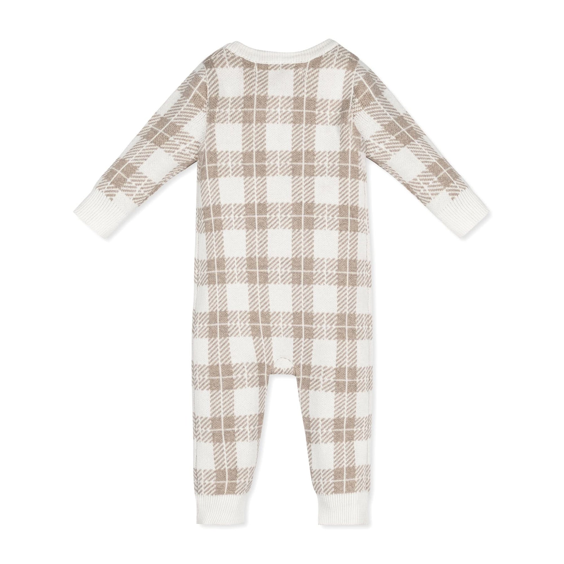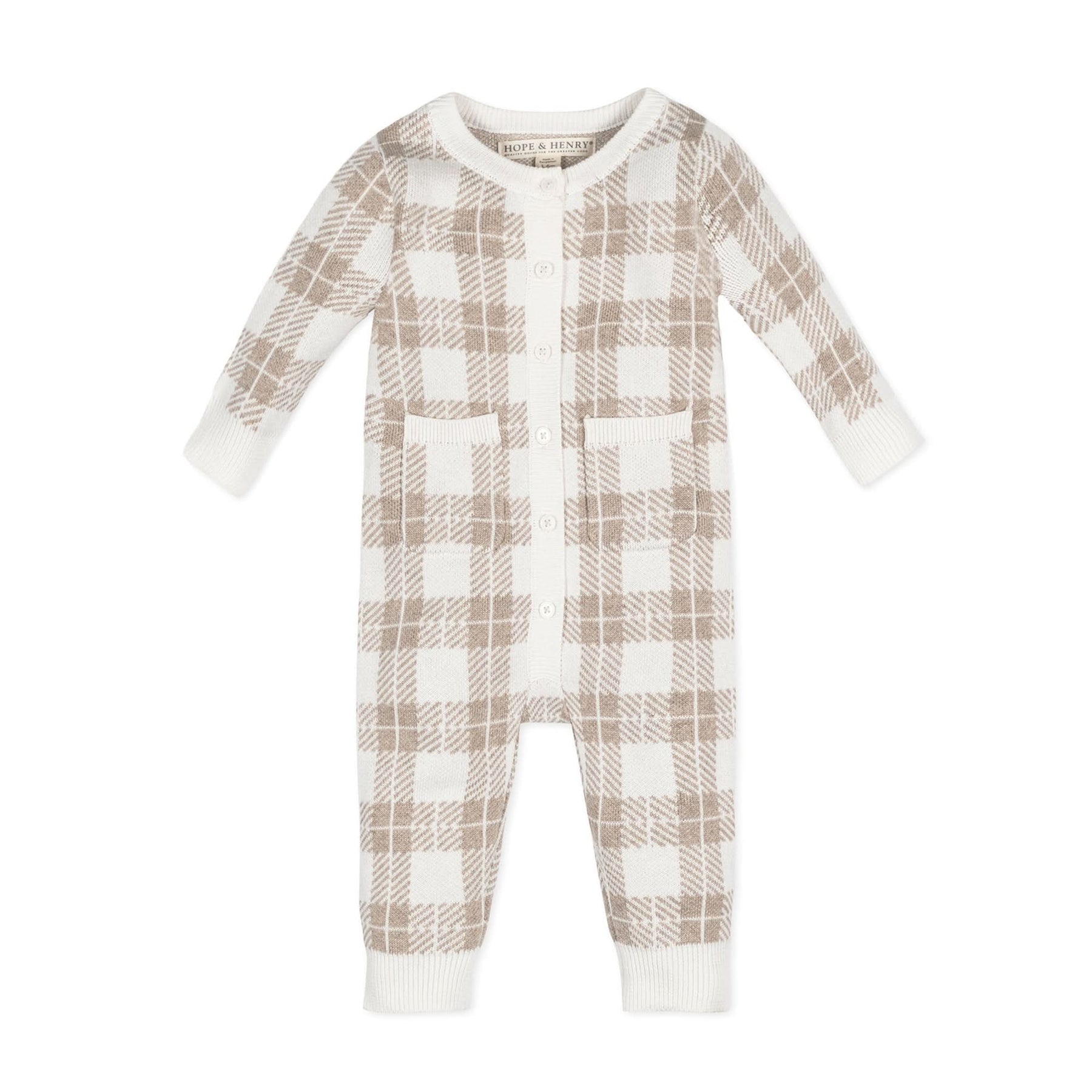 A soft and subtle plaid intarsia sets this sweater romper apart from the rest. Crafted from our luxuriously soft organic cotton, this one-piece features a button front center closure and front patch pockets. Stretchy rib trim makes for easy and comfortable dressing of your little one. Makes a great baby gift!